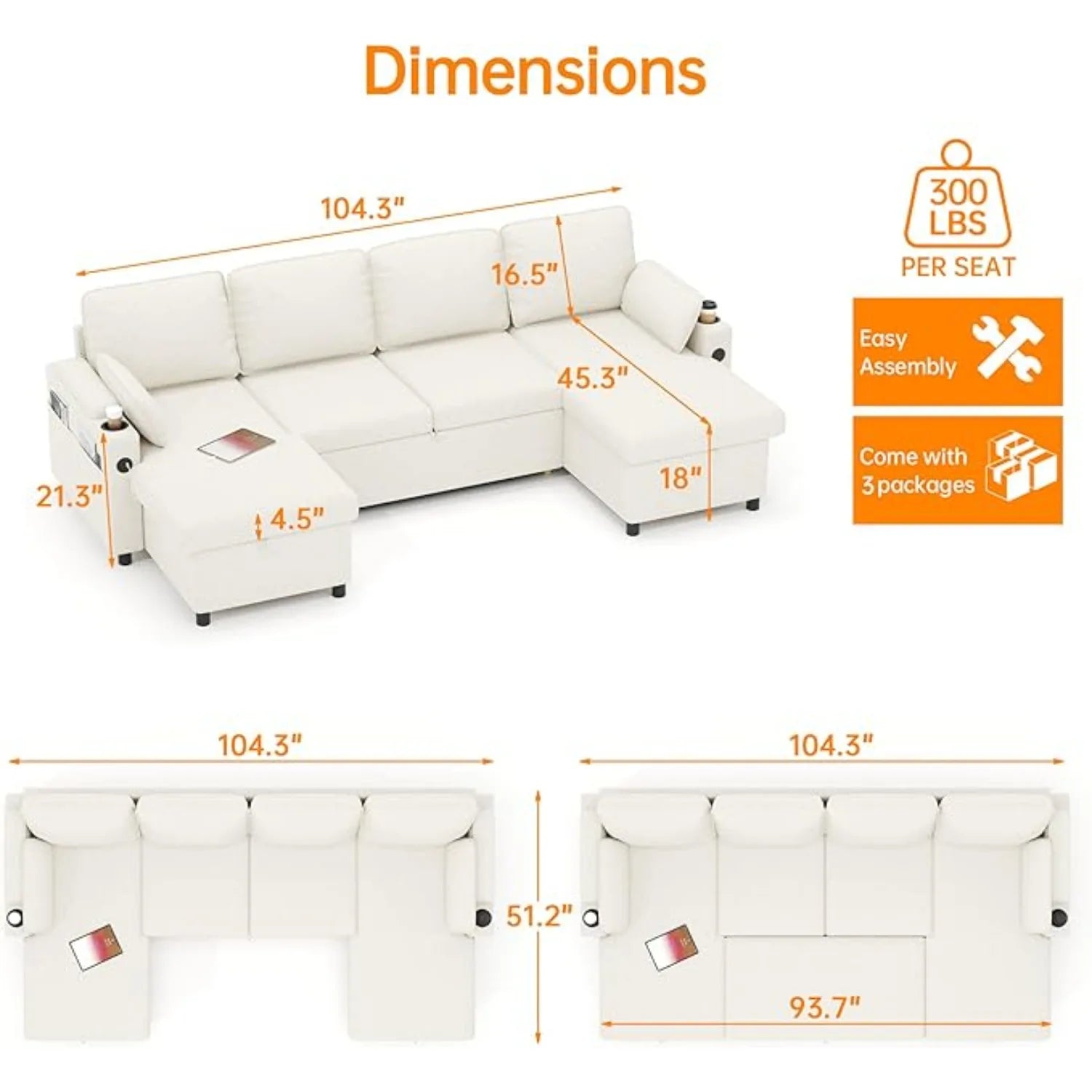 104.3'' U shape Sofa Bed Pull Out Couch Sleeper w/ Double Storage Chaise, U Shaped Convertible Sectional Sleeper Sofa