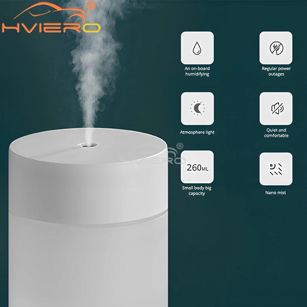 260ML Air Humidifier Ultrasonic Mini Aromatherapy Diffuser Portable Sprayer USB Essential Oil Atomizer LED Lamp for Home Car