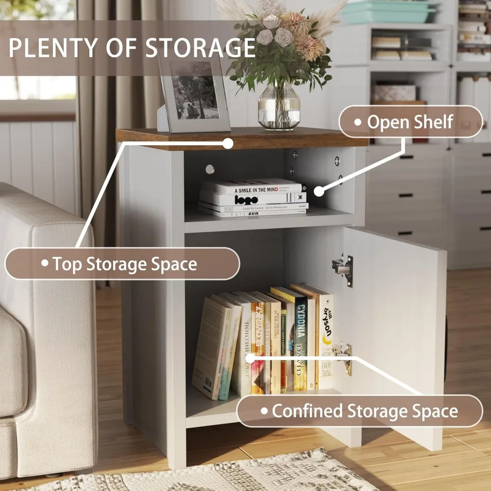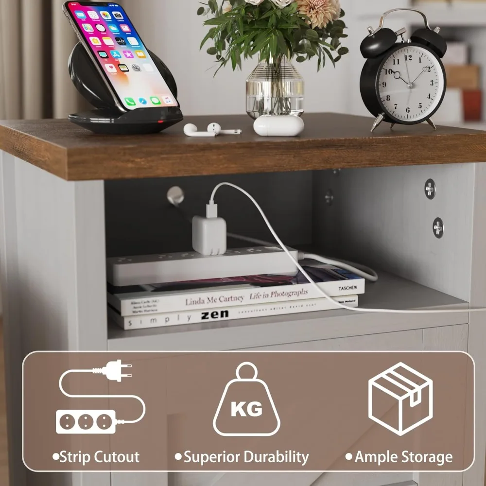- Large Storage Capacity: Nightstand set of 2 dimension 15.7" x 13.8" x 23.6". The farmhouse table set of 2 have an open shelf and a barn door of storage. The spacious space about the farmhouse nightstands bedroom set of 2 set with storage can help you tidy up your room. The open compartment can place your storage basket, books, displaying your beloved photos, plants and decorations on tabletop. The grey bedside nightstand set can also be warmly decorated while storing.