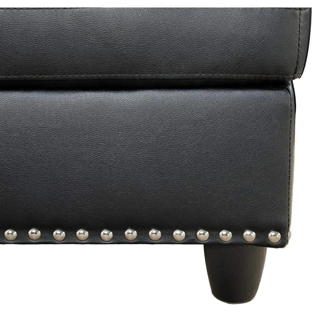 - [98-inch Rivet Edging Detail]: The sofa set is highlighted by rivet edging, lending an edgy yet sophisticated touch to its overall design. At 98 inches, the couch offers a substantial seating area, upholstered in quality materials that promise both comfort and style.