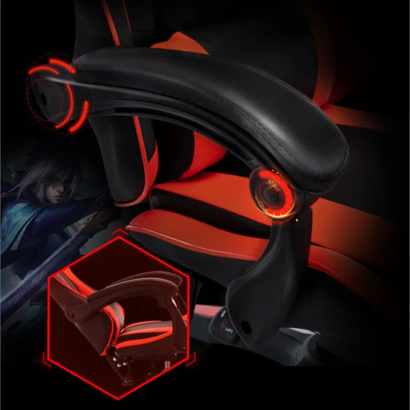 Gaming Chair For Video Game Or Office With Lumbar And Cervical Cushion Ergonomic Adjustable In Height And Reclining Adjustable