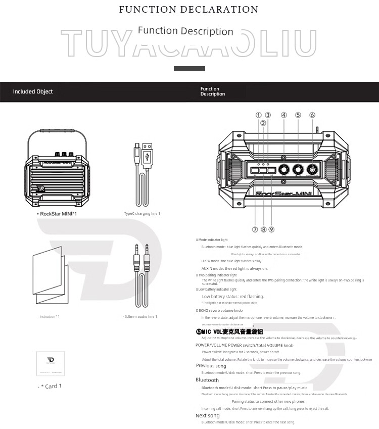 Junwu Rock King Mini Outdoor Bluetooth Speaker HiFi High Sound Quality Electrical Blowpipe Square Dance Wireless Portable Stereo