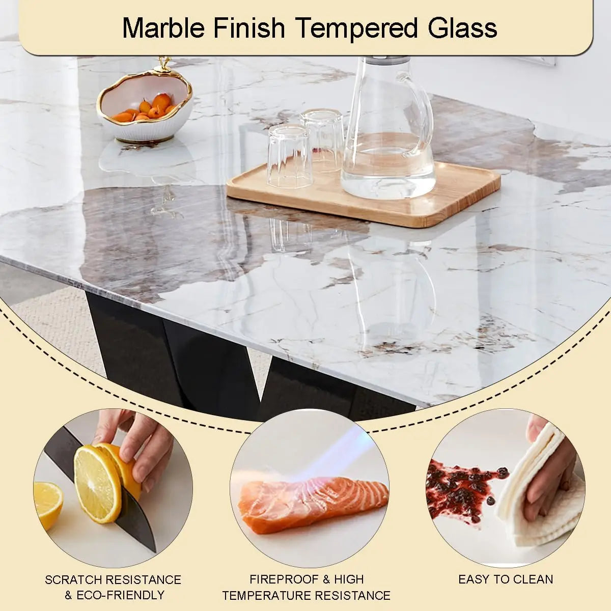- 【White and Gold Dining Table set for 8】:Glass kitchen table featuring a stunning Pandora marble-inspired design. Through a special process, the glass countertops beautifully mimic the allure of marble, adding a visual charm to your table. Not only do they retain the high temperature resistance of glass countertops, but they are also scratch-resistant and effortless to clean. Use our dinner table set,bring a captivating ambiance to your dining experience.