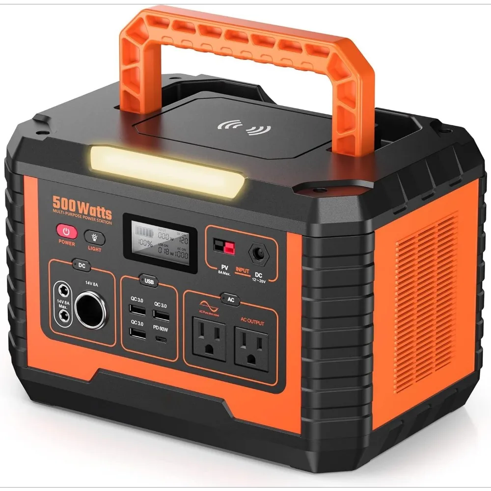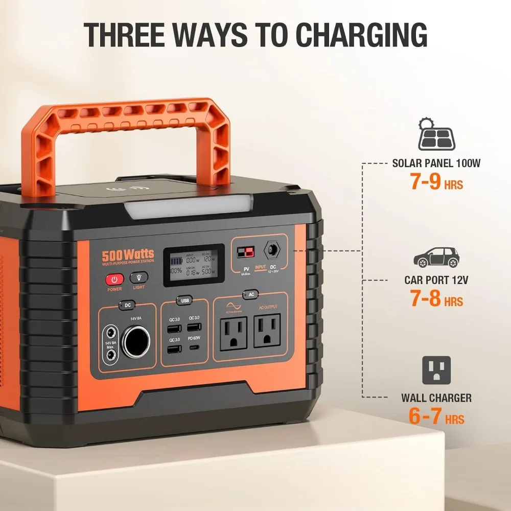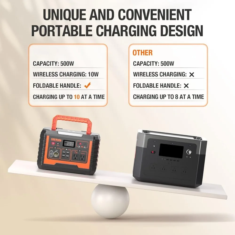 Portable Power Station 500, 110V/500W Solar Generator(Surge 1000W), 519.4Wh Backup Lithium Battery for Outdoor Home Emergenc