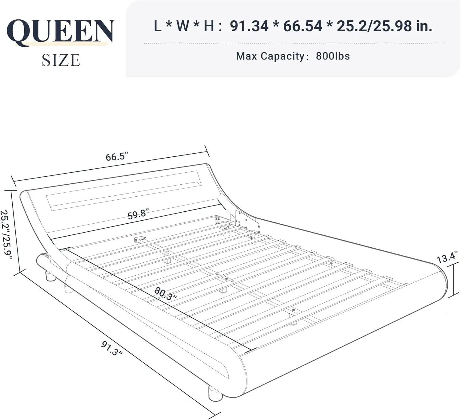 Queen Size LED Platform Bed Frame with Adjustable Headboard/No Box Spring Need/Easy Assembly/Faux Leather in Black