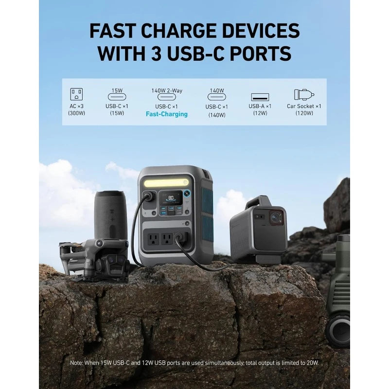 SOLIX C300 Portable Power Station, Outdoor 288Wh LiFePO4 Battery, 300W (600W Surge) Solar Generator, 140W Two-Way Fast Charging, for Camping, Traveling, and Emergencies (Solar Panel Optional)